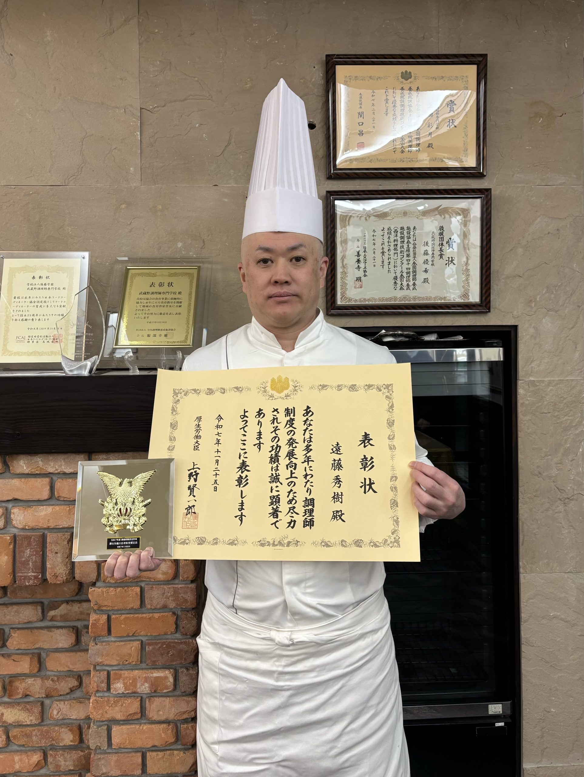 令和7年度調理師関係功労者に対する厚生労働大臣表彰を受賞🏅